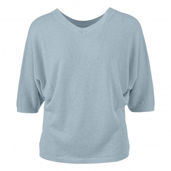Gebreid truitje van het merk Enjoy. Dit truitje heeft een driekwart vleermuismouw en is aan 2 kanten draagbaar. Aan de ene kant heeft het truitje een v-hals en aan de andere kant een ronde hals.