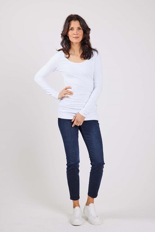 Extra long tee Leija in White: Tijdloos en Comfortabel De Extra long tee Leija in White is je nieuwe favoriete item voor het hele jaar door. Deze witte lange mouwen T-shirt biedt een loose fit pasvorm en een ronde hals, waardoor het perfect is voor elke casual gelegenheid. Gemaakt zonder sluiting voor ultiem gemak, voelt deze tee prettig aan op de huid en laat je moeiteloos bewegen. Deze duurzame basic belooft jarenlang plezier. Gemaakt van hoogwaardige stof Met een samenstelling van 92% katoen en 8% elasthaan, biedt deze tee optimaal comfort en flexibiliteit. Het natuurlijke katoen zorgt voor een zachte en ademende draagervaring, terwijl het elasthaan de benodigde stretch toevoegt, zodat de pasvorm altijd comfortabel en flatterend blijft. Dit maakt het T-shirt ideaal voor warme zomerdagen én gezellige winteravonden. Stijladvies Dit veelzijdige kledingstuk laat zich makkelijk combineren met een scala aan outfits. Draag het samen met een stijlvolle jeans voor een tijdloze look die altijd goed zit. Voeg je favoriete sneakers of laarzen toe om je outfit af te maken. Of je nu naar kantoor gaat of een dagje uit, de Extra long tee Leija in White past bij elke stijl en gelegenheid. Wasvoorschrift Wasvoorschrift: Was op maximaal 30 graden om de kwaliteit van het katoen en elasthaan te behouden. Gebruik een mild wasmiddel en vermijd bleekmiddelen. Droogvoorschrift: Bij voorkeur liggend drogen om vervorming te voorkomen. Gebruik geen droogtrommel om de levensduur van het kledingstuk te verlengen. Strijkvoorschrift: Strijken op een lage temperatuur om de stof mooi en kreukvrij te houden. Vermijd direct strijken op eventuele prints of opdrukken. Met de Extra long tee Leija in White kies je voor stijl en comfort in één. Dit kledingstuk is een investering in kwaliteit waar je lang plezier van zult hebben.