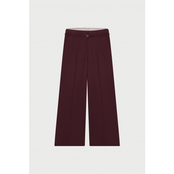 Pantalon van Fabienne Chapot. Deze elegante bordeauxrode broek met wijde pijpen is een stijlvolle essential voor je garderobe. De hoge taille, sierlijke plooien en het subtiele hartdetail aan de voorkant zorgen voor een vrouwelijke en verfijnde uitstraling. De soepele stof valt prachtig en draagt heerlijk comfortabel perfect voor elke gelegenheid.