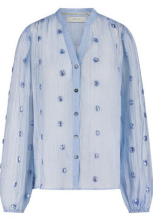 Mooi rijkelijk geborduurde blouse van het merk Fabienne Chapot. Deze blouse heeft een v-hals met schulp randje, lange pofmouwen en een fijne knoopjessluiting.