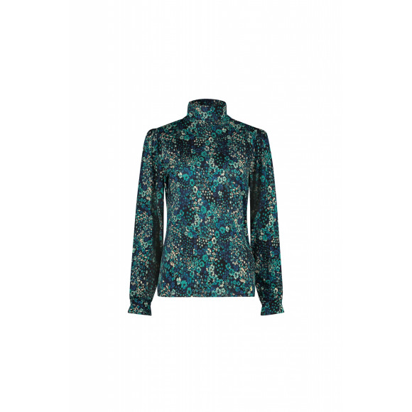 Lop met allover bloemetjes print van het merk Fabienne Chapot. Deze top heeft een lange pofmouw en een col.