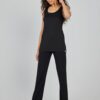 Flared leggings, zwart Ervaar perfectie met de Flared leggings, zwart. Deze legging met een elegante flared fit en elastische tailleband biedt ultiem comfort. De tijdloze zwarte kleur past moeiteloos bij elke gelegenheid, van kantoor tot een avond uit. Dankzij het ontwerp ben je altijd klaar voor het seizoen; genieten van warme zomerdagen of een gezellige winteravond. Gemaakt van hoogwaardige stof De combinatie van 95% viscose en 5% elasthan maakt deze legging heerlijk zacht en rekbaar. Viscose zorgt voor een prettige, ademende ervaring terwijl elasthan zorgt voor een comfortabele pasvorm die zich vormt naar je lichaam. Elk gebruik is een garantie voor stijl zonder in te boeten op comfort. Stijladvies Combineer de Flared leggings, zwart met een leuke blouse voor een moeiteloze, chique look. Voeg sneakers toe voor een sportieve uitstraling of kies voor hakken voor een avondje uit. Creëer eenvoudig variatie in je outfits en voel je elke dag zelfverzekerd. Wasvoorschrift Wassen: Was de legging binnenstebuiten op 30 graden met vergelijkbare kleuren. Gebruik een mild wasmiddel en vermijd bleekmiddel om de stof en kleur te behouden. Drogen: Laat de legging aan de lucht drogen. Vermijd de droger om de stofkwaliteit te waarborgen. Strijken: Strijken is niet nodig. Mocht het toch nodig zijn, strijk dan op lage temperatuur en aan de binnenkant van de stof. Geniet van de veelzijdigheid en het gemak van deze legging die nooit uit voorraad raakt. Voeg een vleugje elegantie toe aan je dagelijkse stijl.