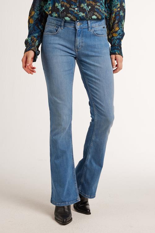 Flared Pants Denim Mid Blue: Tijdloze Elegantie De Flared pants Denim mid blue is de perfecte aanvulling op je garderobe voor iedere gelegenheid. Deze lange broek in een prachtige middenblauwe kleur heeft een stijlvolle flared fit, wat zorgt voor een subtiel statement. Dankzij de handige ritssluiting en de riemlussen, biedt deze broek niet alleen stijl, maar ook praktische elegantie. Ideaal voor elk seizoen; comfortabel en veelzijdig. Gemaakt van hoogwaardige stof Gemaakt van 97% organisch katoen en 3% elasthan, biedt deze broek het ultieme draagcomfort. Het organische katoen geeft een zachte en ademende ervaring, terwijl de elasthan voor net dat beetje extra stretch zorgt. Dit maakt de broek perfect voor dagelijks gebruik, terwijl de stof zijn vorm behoudt en mee beweegt met jouw bewegingen. Stijladvies Combineer de Flared pants Denim mid blue met een leuke blouse voor een casual yet chic look. De flared pasvorm is fantastisch in combinatie met hoge hakken of enkellaarsjes, waardoor je silhouet op elegante wijze geaccentueerd wordt. Of je nu naar kantoor gaat of een dagje uit plant, deze broek past bij elke situatie. Wasvoorschrift Wasvoorschrift: Wassen op 30 graden om de kwaliteit van het organische katoen te behouden. Vermijd het gebruik van bleekmiddelen, zodat de rijke blauwe kleur stralend blijft. Droogvoorschrift: Niet in de droger. Hang je broek op om te drogen en houd zo de stof in topconditie. Strijkvoorschrift: Strijken op lage temperatuur om de strakke lijnen en stijlvolle uitstraling te behouden. Zo blijft je broek er altijd op z’n best uitzien. Met deze instructies blijft jouw Flared pants Denim mid blue er als nieuw uitzien, was na was.