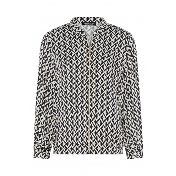 Jasje van het merk Frank Walder. Dit jasje met grafische print in blauw en ecru geeft je outfit een moderne en stijlvolle uitstraling. De soepele stof en ritssluiting zorgen voor een eigentijdse twist, terwijl de klassieke kraag het geheel mooi in balans houdt.