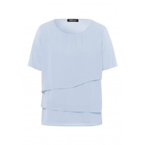 Mooi blouse van Frank Walder met korte mouw tot net boven de elleboog. De laagjes aan de voorkant zorgen ervoor dat het mooi afkleed.