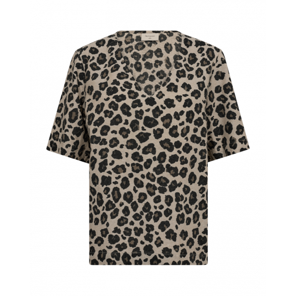 Top van het merk Freequent. Deze luchtige top met luipaardprint heeft een flatterende V-hals en korte mouwen. De rechtvallende pasvorm zorgt voor een comfortabele fit.