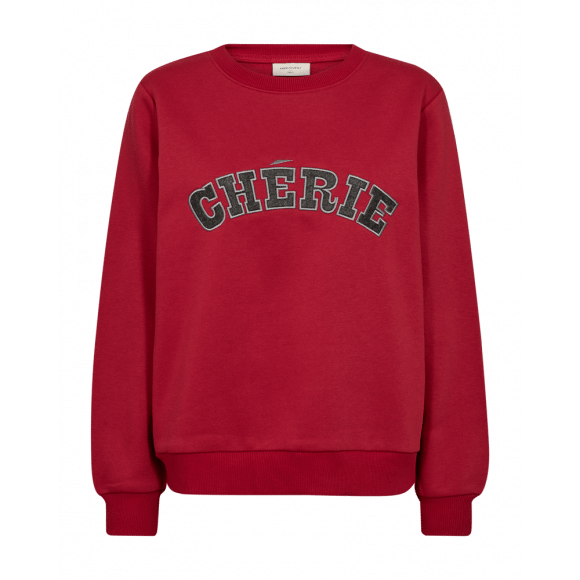 Sweater van het merk Freequent. Deze weater heeft een casual, sportieve look en voelt heerlijk zacht aan. De opvallende rode flockprint met de tekst CHÉRIE aan de voorkant geeft de trui een speelse en trendy uitstraling. Dankzij de ronde hals, lange mouwen en ribboorden heeft dit model een comfortabele pasvorm en is hij perfect voor een relaxte, alledaagse outfit.
