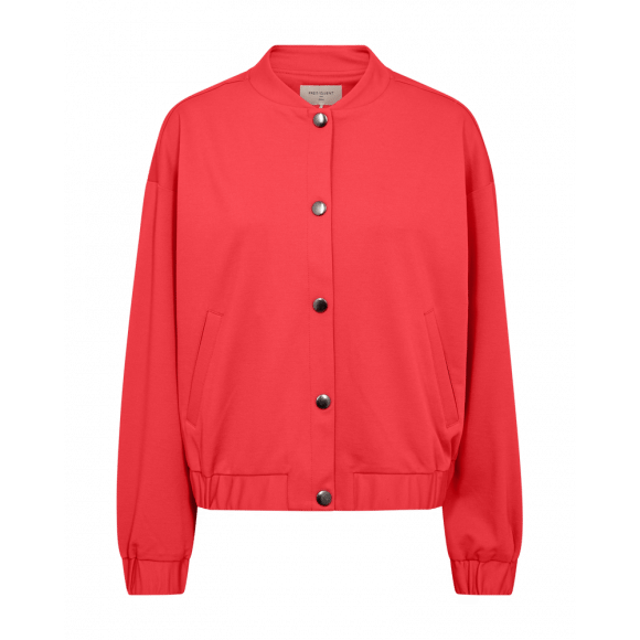 Effen bomberjasje in dun sweatstof van het merk Freequent. Dit jasje heeft een geweldig mooie rode kleur voor het voorjaar! Verder heeft dit jasje alle eigenschappen van een klassiek bomberjasje.