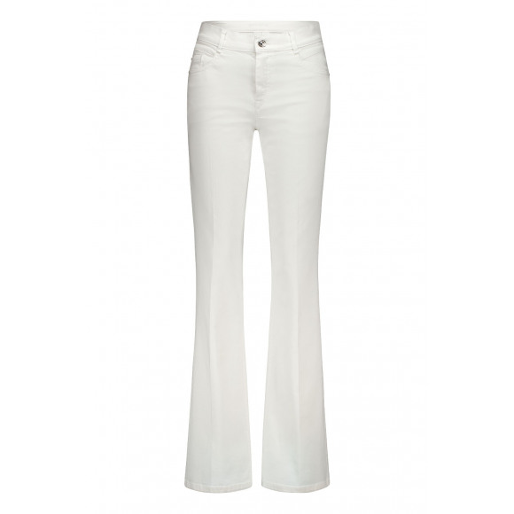 Broek van Gardeur. Deze elegante witte broek is een echte garderobe-essential met een frisse, tijdloze uitstraling. De cleane afwerking en zachte stretchkwaliteit zorgen voor een comfortabele pasvorm die mooi aansluit en de hele dag prettig draagt. De licht uitlopende pijp geeft de broek een vrouwelijk silhouet en maakt dit model geschikt voor zowel casual als meer geklede looks.