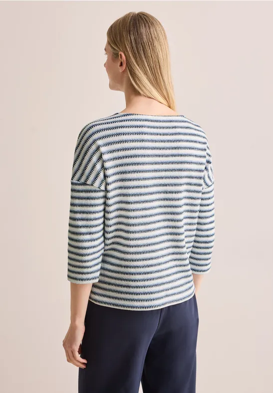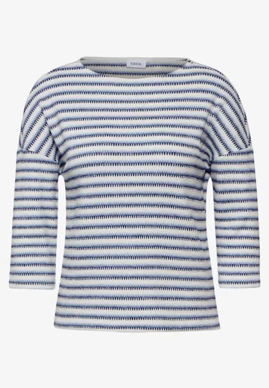 Dit gestreepte overhemd van CECIL voor dames zal je veroveren met zijn modieuze gebreide look. Het shirt heeft een boothals en 3/4-mouwen. De materiaalmix met stretch zorgt voor een hoog draagcomfort.