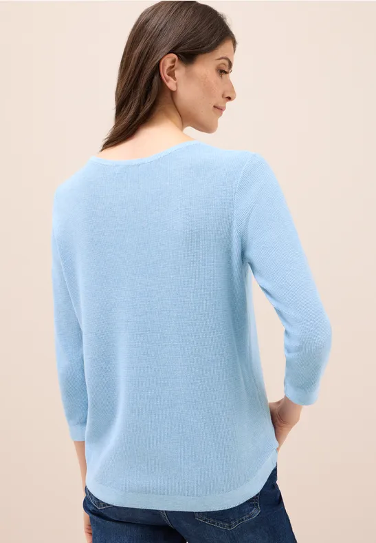 Deze damestrui met ronde hals van CECIL heeft een fijn structuurpatroon en is comfortabel om te dragen. De 3/4-mouwen met kleine splitdetails zorgen voor een modieus accent. Dankzij de comfortabele gebreide stof is deze trui ideaal voor ontspannen alledaagse looks.