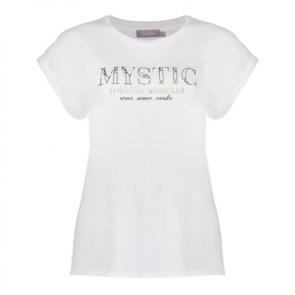 T-shirt van merk Geisha. Dit stijlvolle T-shirt heeft een frisse en vrouwelijke uitstraling dankzij de lichte kleur en de subtiele tekstprint op de borst. De combinatie van verschillende letterstijlen en een vleugje goud geeft het shirt een speels en modern karakter. Door de zachte stof en de comfortabele pasvorm is dit item perfect voor dagelijks gebruik.