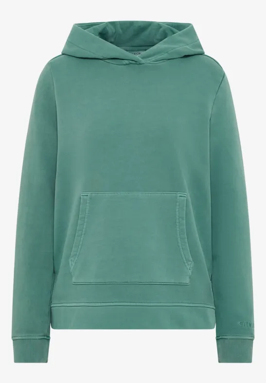 Deze damestrui met capuchon van CECIL heeft een casual garment dye-look. Puur katoen zorgt voor een natuurlijk draagcomfort. De kangoeroezak en manchetten maken hem de ideale metgezel voor ontspannen vrijetijdsoutfits.