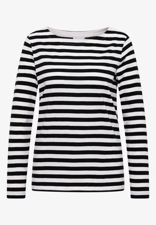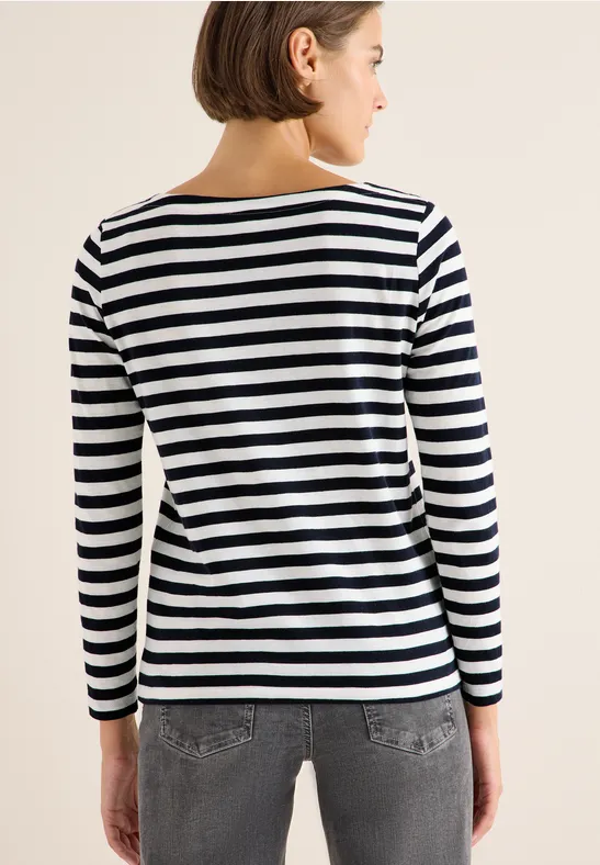 Dit gestreepte basic Shirt van CECIL voor dames heeft een klassieke boothals en een fris streeppatroon. Dankzij het zuivere katoen is het comfortabel om te dragen. Ideaal voor ongecompliceerde alledaagse looks met een maritieme flair.