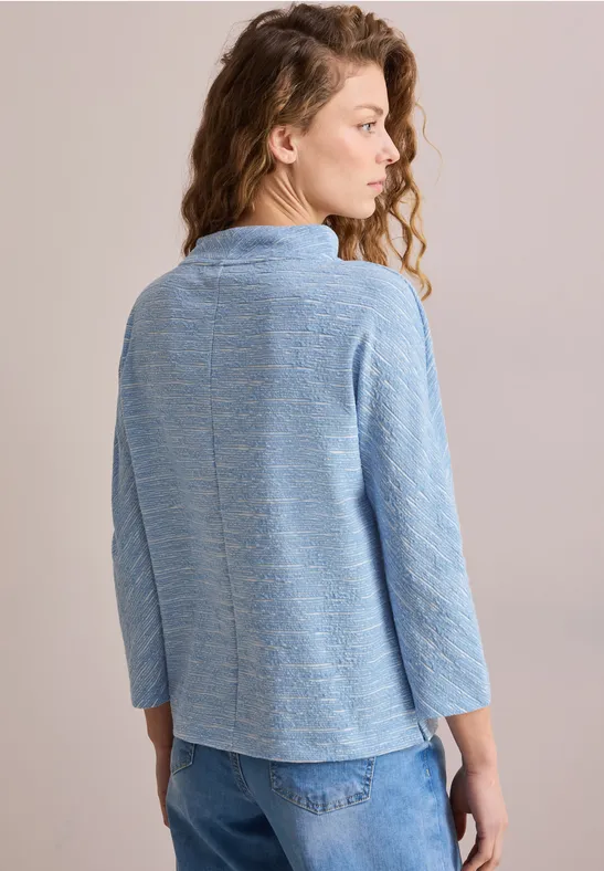 Dit gestructureerde overhemd van CECIL voor dames is bijzonder comfortabel met zijn 3/4 vleermuismouwen. Het shirt heeft een ronde hals en een casual pasvorm. De materiaalmix met stretch maakt het bijzonder comfortabel.