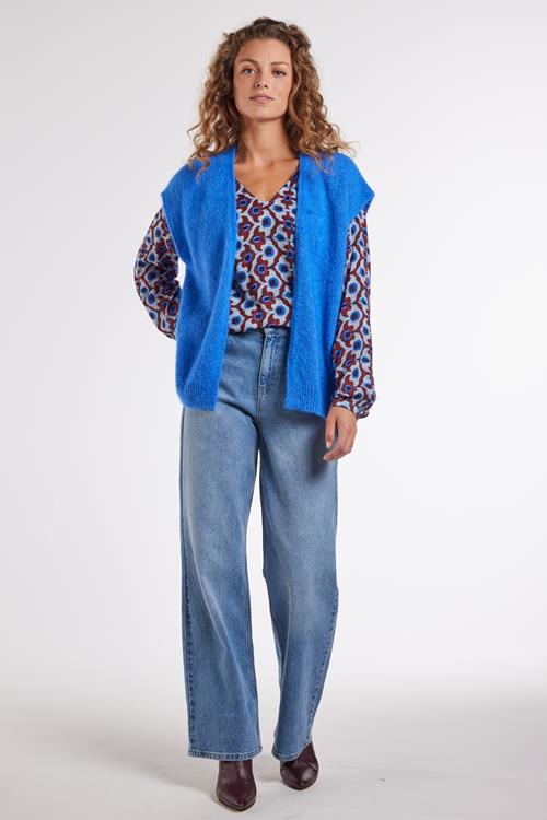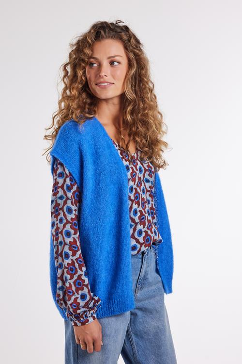 Gilet Scala Sonic Blue: De Perfecte Aanvulling voor de Warme Dagen Ervaar de ultieme combinatie van stijl en comfort met de Gilet Scala Sonic blue. Deze mouwloze gilet, uitgevoerd in een prachtige blauwe tint, is het perfecte stuk voor die dagen dat je behoefte hebt aan iets luchtigs en lichts. Met zijn losse pasvorm en rechte model biedt het niet alleen een trendy uitstraling maar ook optimale bewegingsvrijheid. Deze gebreide gilet is ideaal voor een verfrissende update van je outfit. Gemaakt van Hoogwaardige Stof De Gilet Scala Sonic blue is gemaakt van een zorgvuldig geselecteerde mix van materialen: 40% acryl, 30% polyamide, 25% mohair en 5% wol. Deze samenstelling garandeert niet alleen zachtheid en isolatie, maar ook duurzaamheid en ademend vermogen. Met mohair als een van de belangrijkste componenten, ervaar je de luxe van een lichte maar toch warme touch, perfect voor elke gelegenheid. Stijladvies Je kunt de Gilet Scala Sonic blue moeiteloos combineren met een lekkere broek of jeans voor een casual look, of draag het over een leuke blouse om je outfit net dat beetje extra flair te geven. De veelzijdigheid van deze gilet maakt het een must-have voor elke garderobe, waardoor je altijd klaar bent voor een spontane uitstap. Wasvoorschrift Was instructie: Zorg ervoor dat je de gilet wast op 30 graden om de stof in topconditie te houden. Vermijd bleekmiddel en chemische reinigers om de levensduur te verlengen. Droogvoorschrift: Hang de gilet na het wassen op om te drogen, maar vermijd de droger om krimp en beschadiging te voorkomen. Strijkvoorschrift: Mocht het nodig zijn, strijk dan op een lage temperatuur om de stof en kleur mooi te houden. De Gilet Scala Sonic blue voegt een vleugje elegantie toe aan je dagelijkse outfit, perfect voor elke stijlvolle gelegenheid.