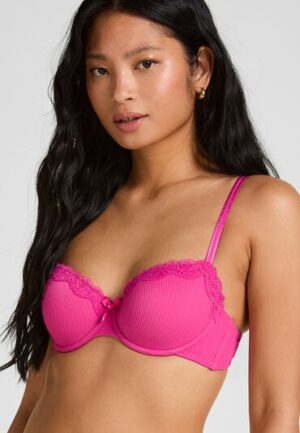 Deze voorgevormde beugel bh is afgewerkt met kanten details aan de bovenzijde van de cups. Tussen de cups zit een klein strikje voor de extra sexy uitstraling. Combineer met de matchende items! Voorgevormd Verstelbare schouderbandjes Met beugel Kant Strikje