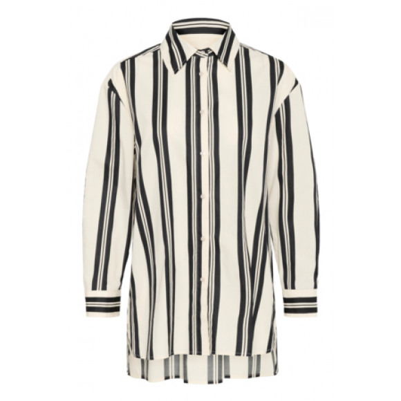 Deze gestreepte blouse van In Wear is een tijdloos item dat je eindeloos kunt combineren. Het rechte model met klassieke kraag en lange mouwen geeft een moderne, maar ook stijlvolle uitstraling. De zwart witte strepen zorgen voor een speels contrast, terwijl de losse pasvorm zorgt voor optimaal draagcomfort.