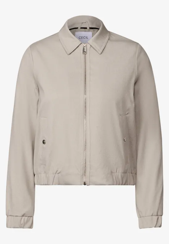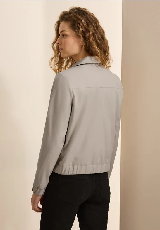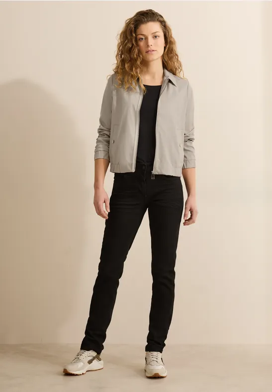 Met zijn glitterdetails geeft dit CECIL-jasje voor dames een modieuze touch. Het korte jack heeft een overhemdkraag en lange mouwen met elastische boorden, terwijl de elastische zoom voor een perfecte pasvorm zorgt. Zijzakken ronden de look af en de materiaalmix met stretch zorgt voor een comfortabele pasvorm.