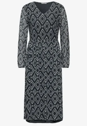 Deze knielange jurk van CECIL voor dames maakt indruk met zijn subtiel gestreepte textuur en sportieve details. De kraag met trekkoord en de steekzakken maken de jurk bijzonder geschikt om elke dag te dragen. Lange mouwen en een comfortabele pasvorm ronden de look af.