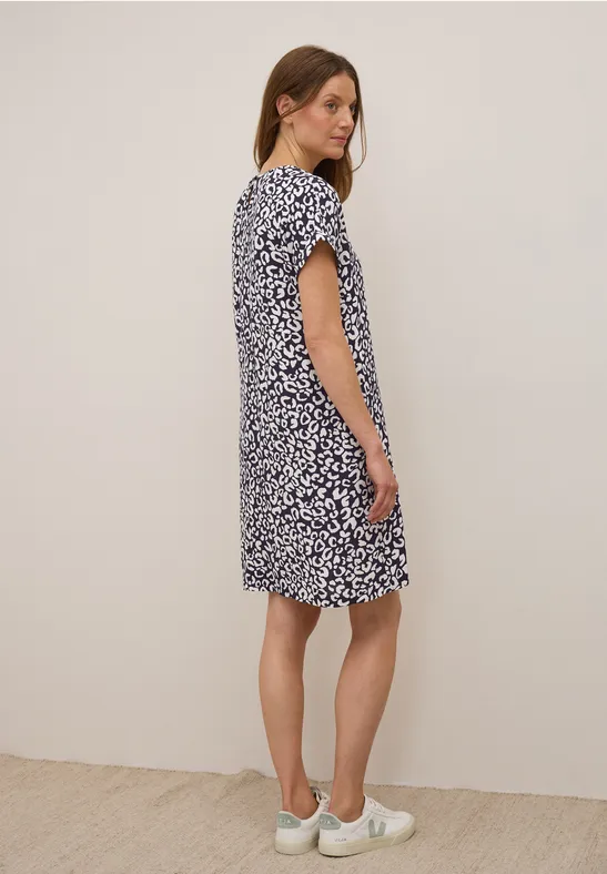 Deze knielange jurk van CECIL voor dames heeft een grafisch patroon en een luchtige V-hals. De zachte viscosestof maakt hem comfortabel om te dragen, terwijl de steekzakken praktische accenten toevoegen. Perfect voor zomerse dagen met stijl en comfort.