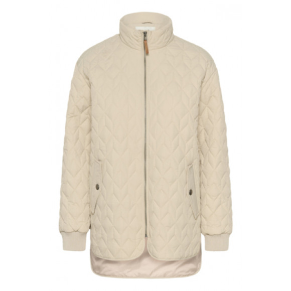 Jas van Kaffe. Deze mooie gewatteerde jas in een zachte zandkleur is een perfecte mix van stijl en comfort. Het model heeft een modern quiltpatroon, een opstaande kraag en een fijne ritssluiting. Door de iets langere lengte en de licht afgeronde onderkant krijgt de jas een vrouwelijke uitstraling én is hij ideaal voor frisse dagen.