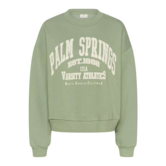 Sweater van Kaffe. Deze casual sweater heeft een sportieve, frisse uitstraling dankzij de zachte groentint en de opvallende college-print op de voorzijde. De relaxed fit en comfortabele stof maken dit item ideaal voor dagelijks gebruik, terwijl de ribboorden zorgen voor een mooie afwerking. Een fijne basic met een trendy, nonchalant karakter.