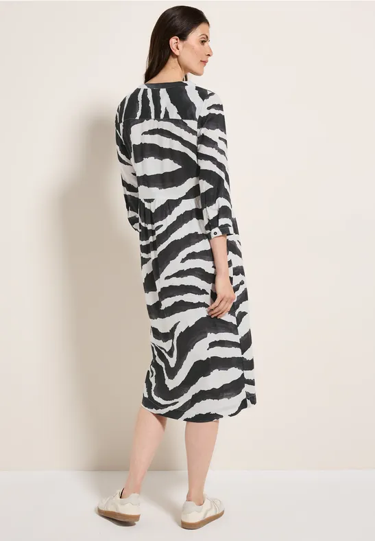 Deze tuniekjurk met patroon van CECIL voor dames is gemaakt van puur katoen, waardoor hij licht en comfortabel is om in de zomer te dragen. 3/4-mouwen en een V-hals maken de look af, terwijl het grafische patroon een modieus accent toevoegt. De perfecte keuze voor warme dagen!