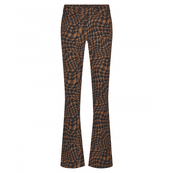 Flared broek met allover pied de poule print van het merk Lady Day. Deze broek heeft steekzakken voor en klepzakken achter. Combineer deze broek met een prachtige blouse of top van Lady Day.