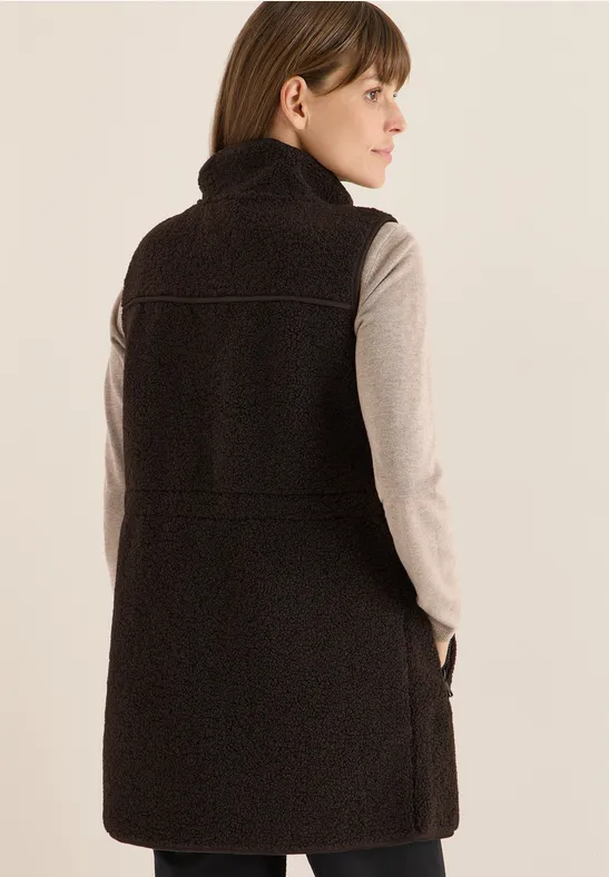 Het lange teddygilet van CECIL voor dames maakt indruk met zijn zachte kwaliteit en praktische eigenschappen. De ritssluiting, zachte opstaande kraag en zijzakken met rits bieden comfort, terwijl het trekkoord in de taille voor een vrouwelijk silhouet zorgt. Perfect voor knusse en stijlvolle gelaagde looks op frisse dagen.