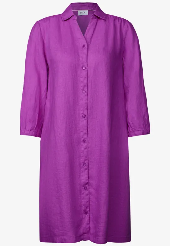 Deze knielange blousejurk van CECIL voor dames heeft een luchtige en casual look. De overhemdkraag en doorlopende knoopsluiting geven hem een klassieke look. De lichtgewicht linnen stof is comfortabel om te dragen – perfect voor warme dagen.