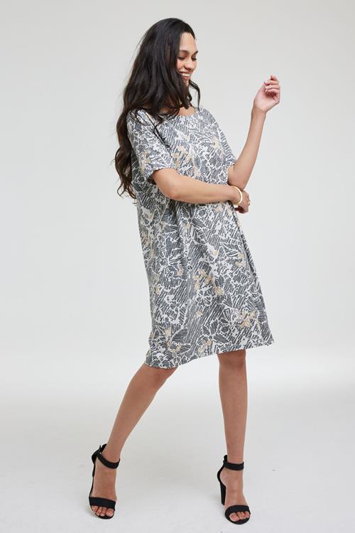 Luchtige Elegantie: Loose dress Baya Pixel print Voel de vrijheid en frisheid van het warmere seizoen met de Loose dress Baya Pixel print. Dit lichte, charmante kledingstuk met korte mouwen is jouw perfecte metgezel voor zonnige dagen. Dankzij de speelse print en de losse pasvorm ervaar je zowel comfort als stijl. De ronde hals en het zachte, witte dessin maken deze jurk tot een veelzijdig item in je garderobe. Gemaakt van hoogwaardige stof De jurk is vervaardigd van 95% viscose en 5% elasthan. Deze materialen zorgen ervoor dat de stof soepel langs je lichaam valt en bieden een perfect draagcomfort. Viscose staat bekend om zijn ademende eigenschappen, wat ideaal is voor warme dagen. Het elastaan zorgt voor net dat beetje rek, zodat de jurk moeiteloos met je meebeweegt. Stijladvies Draag de Loose dress Baya Pixel print met een paar stijlvolle sandalen of sneakers voor een casual look. Voor een meer geklede uitstraling, combineer je het met stijlvolle accessoires en een paar elegante hakken. Met deze jurk creëer je moeiteloos een frisse, zomerse look die bij elke gelegenheid past. Wasvoorschrift Wasvoorschrift: Was de jurk op 30 graden om de stof en de print in topconditie te houden. Droogvoorschrift: Niet geschikt voor de droger. Laat de jurk aan de lucht drogen voor het beste resultaat. Strijkvoorschrift: Strijken op lage temperatuur om de vorm en de kwaliteit van de stof te behouden. Met deze eenvoudige verzorgingstips blijft je jurk prachtig en draagbaar seizoen na seizoen. Voeg de Loose dress Baya Pixel print toe aan je garderobe en geniet van de lichte en luchtige stijl die het biedt.