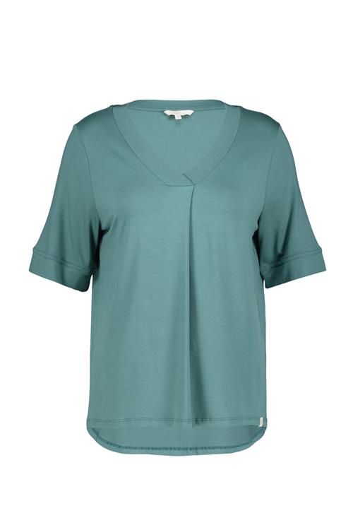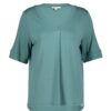 Volop Stijl met de Loose tee Bacio Atlantic green Ervaar het comfort en de stijl van de Loose tee Bacio Atlantic green. Deze groene, korte mouw T-shirt brengt een frisse uitstraling, perfect voor elke gelegenheid. Het V-halsmodel en de rechte pasvorm maken het een veelzijdig kledingstuk dat je moeiteloos kunt combineren. Ontworpen met het unieke Vortex-detail, biedt deze tee een eigentijdse look die nooit uit de mode raakt. Gemaakt van hoogwaardige stof Deze tee is vervaardigd uit 95% viscose en 5% elasthan. Dankzij de zachte viscose valt de stof soepel en comfortabel op je huid, terwijl de elasthan zorgt voor de perfecte hoeveelheid stretch. Dit geeft je de vrijheid van beweging die je nodig hebt in je dagelijkse leven, terwijl het materiaal zijn vorm en uitstraling behoudt. Stijladvies De Loose tee Bacio Atlantic green is eenvoudig te combineren met jouw favoriete kledingstukken. Combineer deze tee bijvoorbeeld met een mooie jeans voor een casual look. Voeg een paar stijlvolle sneakers of sandalen toe voor een outfit die zowel trendy als comfortabel is. Wasvoorschrift Wasvoorschrift: Om de kwaliteit te behouden, was je de tee op 30 graden. Dit helpt de kleur en vorm langer mooi te houden. Droogvoorschrift: Droog de tee bij voorkeur niet in de droger om krimpen en beschadiging van het materiaal te voorkomen. Strijkvoorschrift: Strijk de tee op een lage temperatuur. Dit zorgt ervoor dat de stof zijn soepelheid en glans behoudt zonder te beschadigen. Met de Loose tee Bacio Atlantic green voeg je een stijlvol en veelzijdig item toe aan je garderobe, klaar om elk seizoen met je mee te gaan.