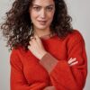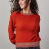 Korte sportieve trui gemaakt van polyamide, acryl en alpaca wol. Trui gala is afgewerkt met lurex in de manchetten en boorden waardoor het een feestelijk tintje krijgt!
