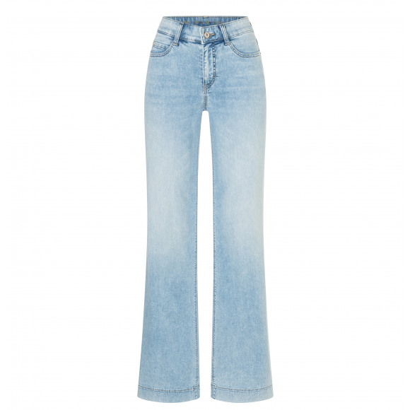 Jeans van merk MAC. Deze lichtblauwe jeans heeft een tijdloze uitstraling met een vrouwelijke, licht uitlopende pijp die zorgt voor een elegant silhouet. De zachte denim en subtiele wassing geven de broek een frisse, zomerse look, terwijl de stretch zorgt voor een comfortabele pasvorm die mooi aansluit.