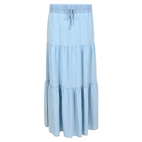 Lange tencel stroken rok van het merk Maicazz. Deze rok heeft een lange lengte en elastische boord met koordje.