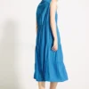 Deze mouwloze gestructureerde midi-jurk van CECIL voor dames heeft een ronde halslijn met split en een elegant lintje. De fijn gestreepte structuur geeft de jurk een moderne touch. Hij valt tot op de kuit en is gemaakt van gemakkelijk te onderhouden, strijkvrij materiaal. Hij biedt comfort en stijl voor allerlei gelegenheden.