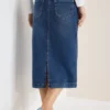 De denim rok van CECIL voor dames heeft een figuurflatterende Mid Waist en een comfortabele tailleband met trekkoord. De blauwe wassing, split aan de achterkant en 5-pocketstijl maken het een veelzijdig combinatiestuk. De stretch katoenmix maakt ze comfortabel om te dragen – perfect voor casual looks met een vrouwelijke touch.