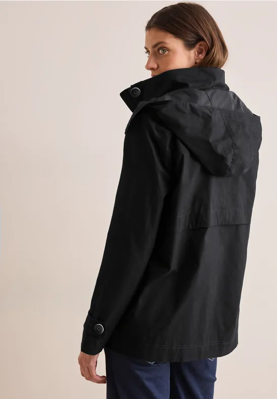 Deze midi-trenchcoat van CECIL voor dames heeft een moderne outdoorlook en is zeer comfortabel om te dragen. Hij heeft een capuchon die kan worden opgeborgen in de opstaande kraag, een blinde ritssluiting en zijzakken met knopen. Ideaal voor frisse dagen.