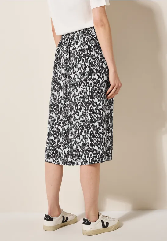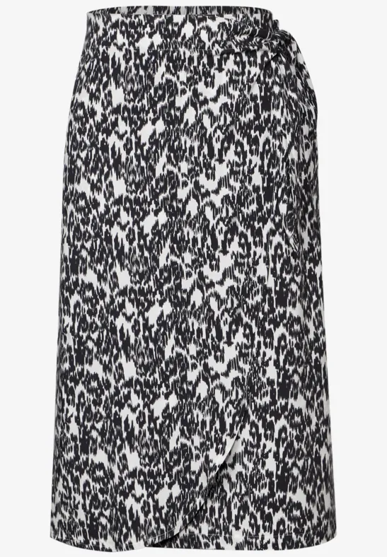 Deze gedessineerde midirok van CECIL voor dames heeft een overslagdetail op de tailleband en een Stretch tailleband aan de achterkant. Het grafische patroon zorgt voor een vrouwelijke touch. De lichte viscosestof is zeer comfortabel om te dragen.