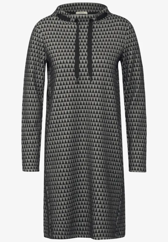 De minimale jacquardjurk van CECIL voor dames is een echte blikvanger. De kraag met tunnelkoord en de lange mouwen benadrukken de sportieve, elegante look. De praktische steekzakken en de knielange pasvorm maken van deze jurk een veelzijdige favoriet.