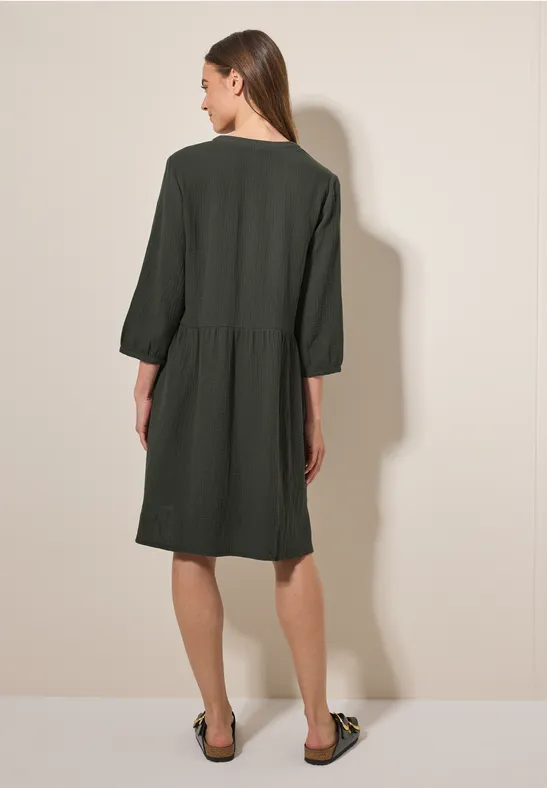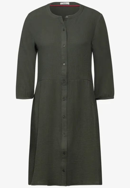 Deze mousseline jurk van CECIL voor dames heeft een moderne look en voelt zacht aan. De overhemdkraag, 3/4-mouwen en steekzakken maken deze knielange jurk tot een veelzijdige metgezel voor elke dag. Dankzij het zuivere katoen voelt hij aangenaam zacht aan op de huid.