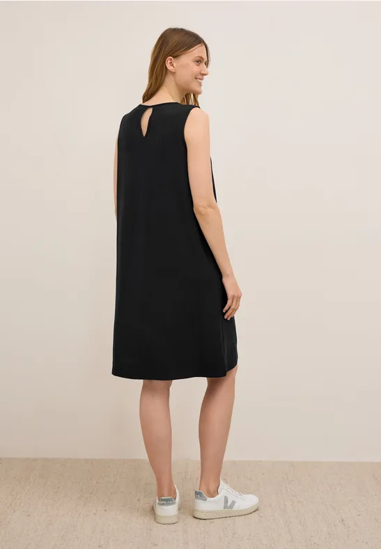 Deze mouwloze jersey jurk van CECIL voor dames heeft een luchtig model en een vrouwelijke ronde halslijn met een geraffineerde uitsnede aan de achterkant. De zachte viscose jersey stof met stretch maakt het bijzonder comfortabel om te dragen. Ideaal voor warme dagen en ongecompliceerde zomerlooks.