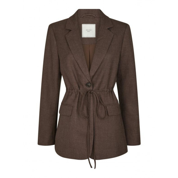 Blazer van Neo Noir. Deze chique bruine blazer heeft een elegante, vrouwelijke pasvorm met een koord in de taille, waarmee je het silhouet mooi kunt accentueren. De klassieke reverskraag en klepzakken geven het jasje een tijdloze uitstraling, terwijl de soepele stof zorgt voor een comfortabele fit. Perfect voor zowel zakelijke looks als casual chic combinaties.