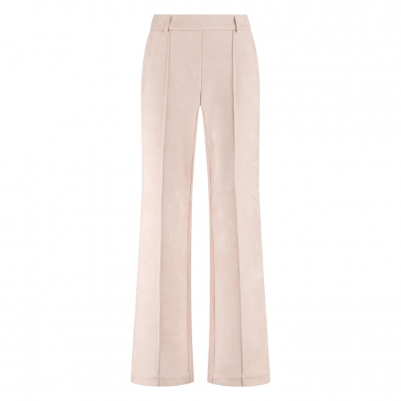 Suedine pantalon van het merk Nukus. Deze elegante broek heeft een hoge taille, een licht uitlopende pijp en siernaden aan de voorzijde. Gemaakt van een zachte, stretchy suedine die comfortabel draagt en een luxe uitstraling geeft.