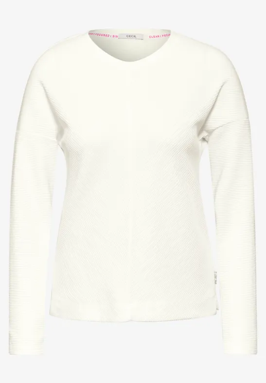 Dit ottomanshirt van CECIL voor dames heeft een trechtervormige hals en een stijlvol tunnelkoord met een bedrukte band. De lange mouwen en de materiaalmix met stretch zorgen voor een hoog draagcomfort. Ideaal voor een modieuze, casual outfit.