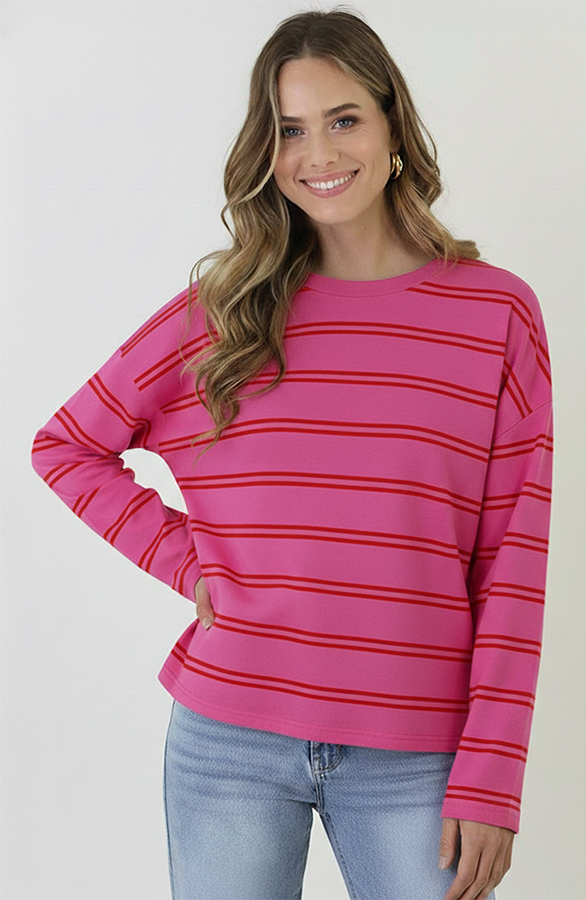 Deze oversized gestreepte top is een echte everyday essential. Gemaakt van zacht katoen voor optimaal draagcomfort en een luchtige fit. De neutrale strepen geven de top een rustige, tijdloze uitstraling die moeiteloos te combineren is.Sizes: ONE SIZE, suitable for ladies with sizes S(36), M(38), L(40) Fit: valt als normaalModel: 178 cm and wears size One SizeDetails: ronde hals, lange mouwen and gestreept patroon Materials: 25% Polyester, 5% Elastaan, 70% KatoenWashing instructions: 30 graden handwasFor best results: niet in de droger, geen wasverzachter