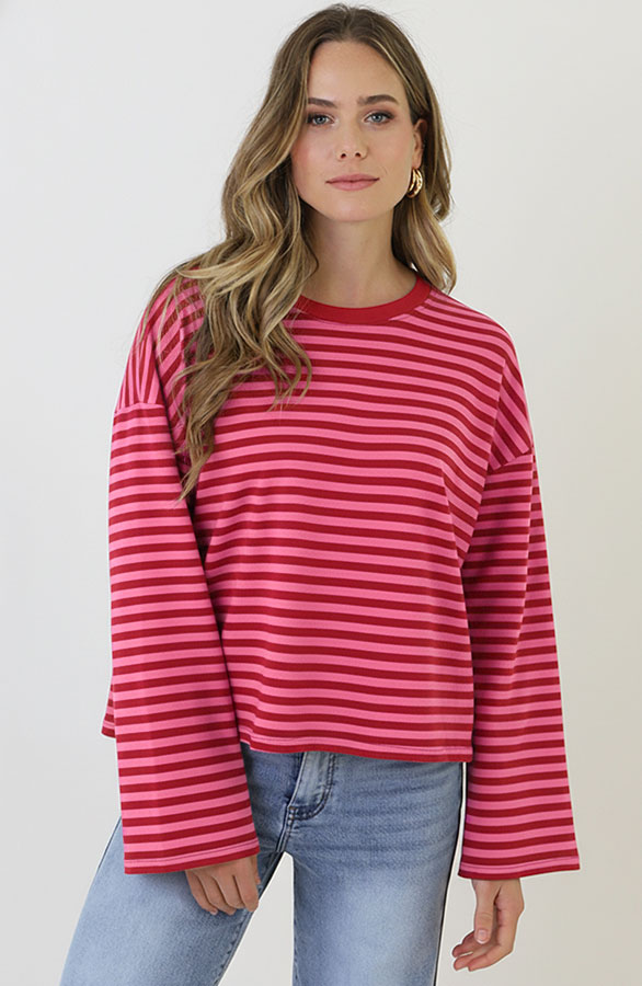 Oversized Gestreepte Katoenen Top Fuchsia Roze