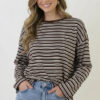Deze oversized gestreepte top is een echte everyday essential. Gemaakt van zacht katoen voor optimaal draagcomfort en een luchtige fit. De neutrale strepen geven de top een rustige, tijdloze uitstraling die moeiteloos te combineren is.Sizes: ONE SIZE, suitable for ladies with sizes S(36), M(38), L(40) Fit: valt als normaalDetails: ronde hals, lange mouwen and gestreept patroon Materials: 25% Polyester, 5% Elastaan, 70% KatoenWashing instructions: 30 graden wasmachine, wij adviseren om dit item te wassen in een waszak.For best results: niet in de droger, geen wasverzachter