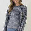 Deze oversized gestreepte top is een echte everyday essential. Gemaakt van zacht katoen voor optimaal draagcomfort en een luchtige fit. De neutrale strepen geven de top een rustige, tijdloze uitstraling die moeiteloos te combineren is.Sizes: ONE SIZE, suitable for ladies with sizes S(36), M(38), L(40) Fit: valt als normaalDetails: ronde hals, lange mouwen and gestreept patroon Materials: 25% Polyester, 5% Elastaan, 70% KatoenWashing instructions: 30 graden wasmachine, wij adviseren om dit item te wassen in een waszak.For best results: niet in de droger, geen wasverzachter